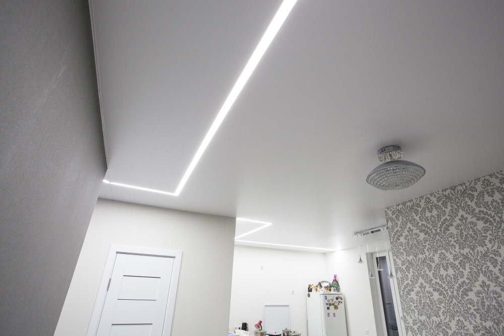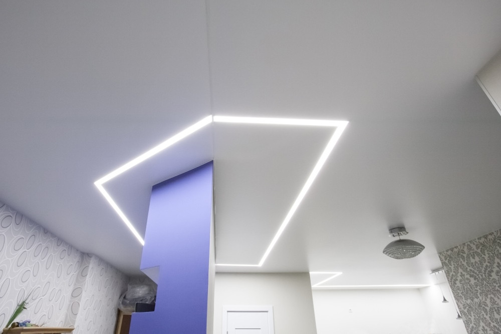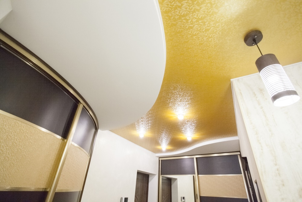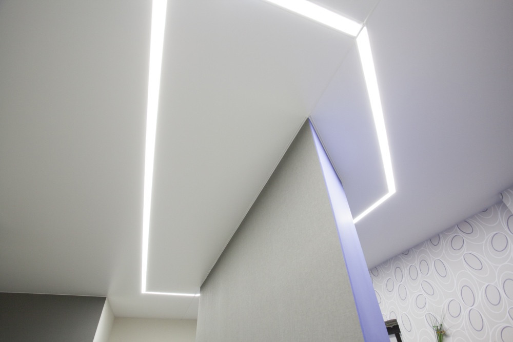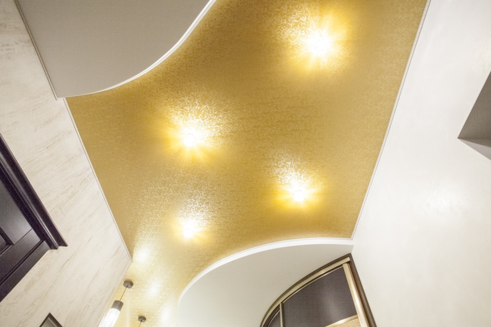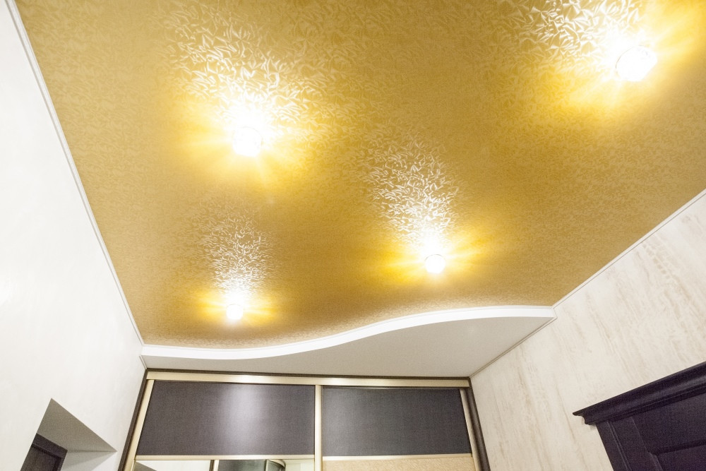 Натяжное полотно скрывает электропроводку, коммуникации и дефекты базового потолка